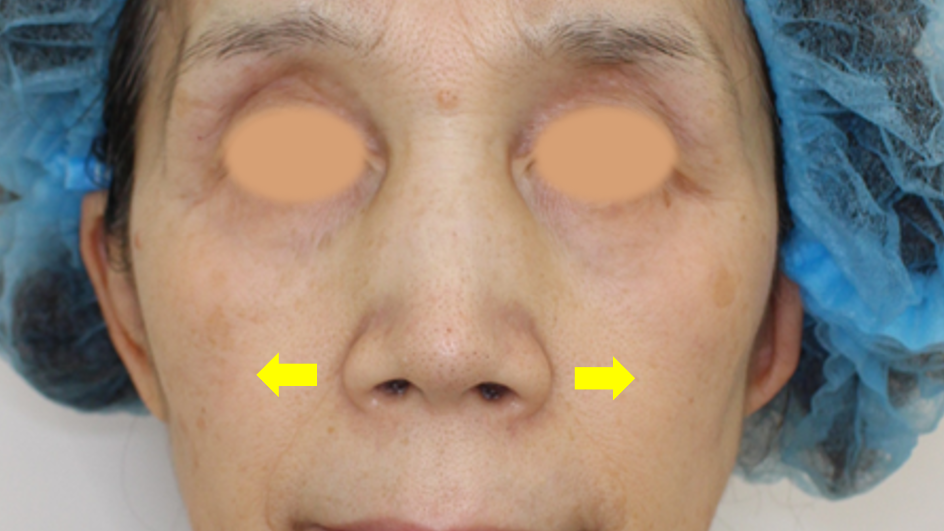 before写真。肝斑とADMが混在しており、気合をいれて治療にあたらせていただきました。