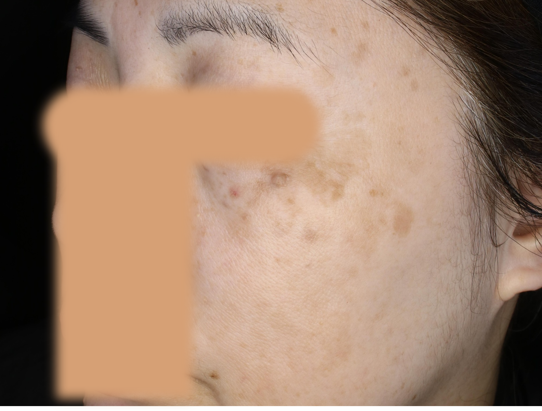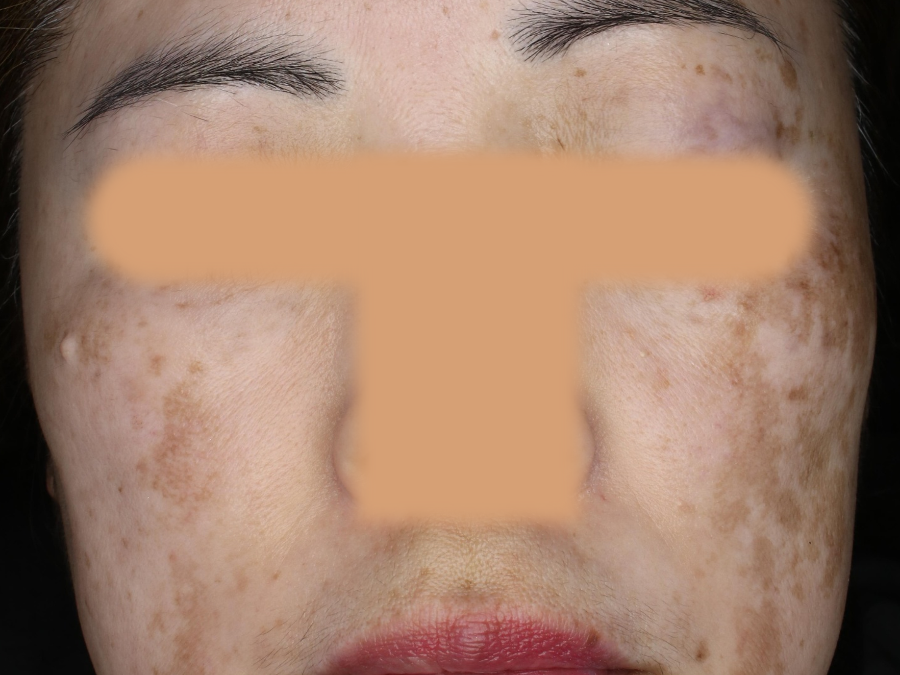 時に部分的に、日光性色素斑のように色調と境界が