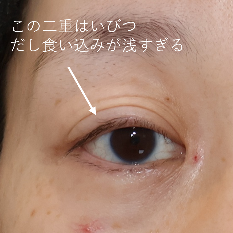 二重ラインがいびつで食い込みが